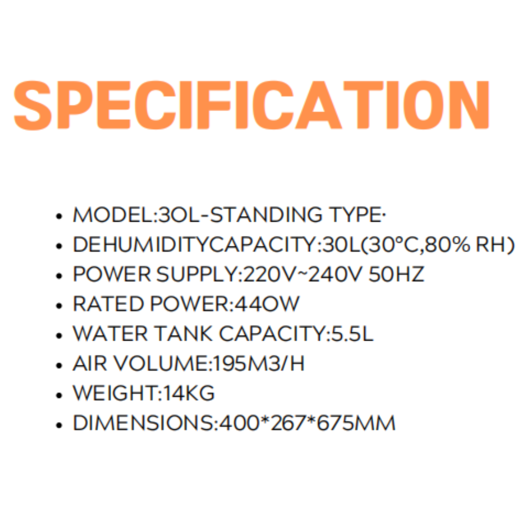 High Capacity: Removes up to 30 liters of moisture per day, ideal for medium-sized rooms, basements, and areas with high humidity.